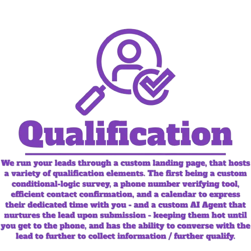We use a multi-step qualification process designed to filter out anyone who isn't a serious prospect. First, we run highly targeted ad campaigns that speak directly to your ideal property owner. Each lead is then sent to a landing page with a qualification survey built around the criteria you set. We confirm their contact information, nurture them through automated follow-up messages to keep them engaged, and send automated reminders to confirm appointments, so by the time you speak with them, they're warmed up, vetted, and ready for a real conversation.